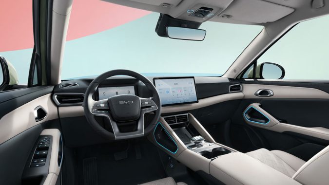 Nội thất của BYD Atto 2 được chế tác với ghế ngồi bọc da thuần chay (vegan) bóng bẩy, thân thiện với môi trường cùng các vật liệu chất lượng cao xuyên suốt trên bảng điều khiển và các tấm ốp cửa.