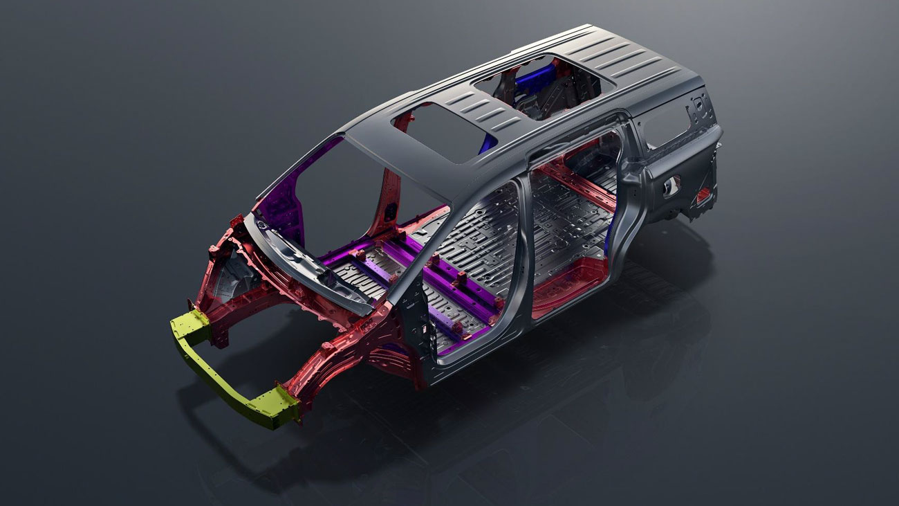Sử dụng kết cấu khung thép cường độ cao và thép dập nóng chiếm hơn 73% trọng lượng khung xe, giúp gia tăng độ vững chắc mà vẫn tối ưu trọng lượng.