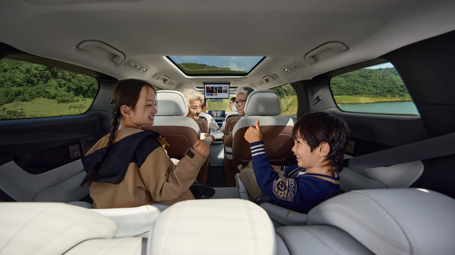 Với chiều dài trên 5,1 mét và trục cơ sở hơn 3 mét, BYD M9 tạo ra một khoang nội thất rộng rãi bậc nhất phân khúc MPV. Ba hàng ghế được bố trí linh hoạt, có thể dễ dàng chuyển đổi linh hoạt giữa chế độ gia đình, thương gia, hoặc chở hàng hóa.